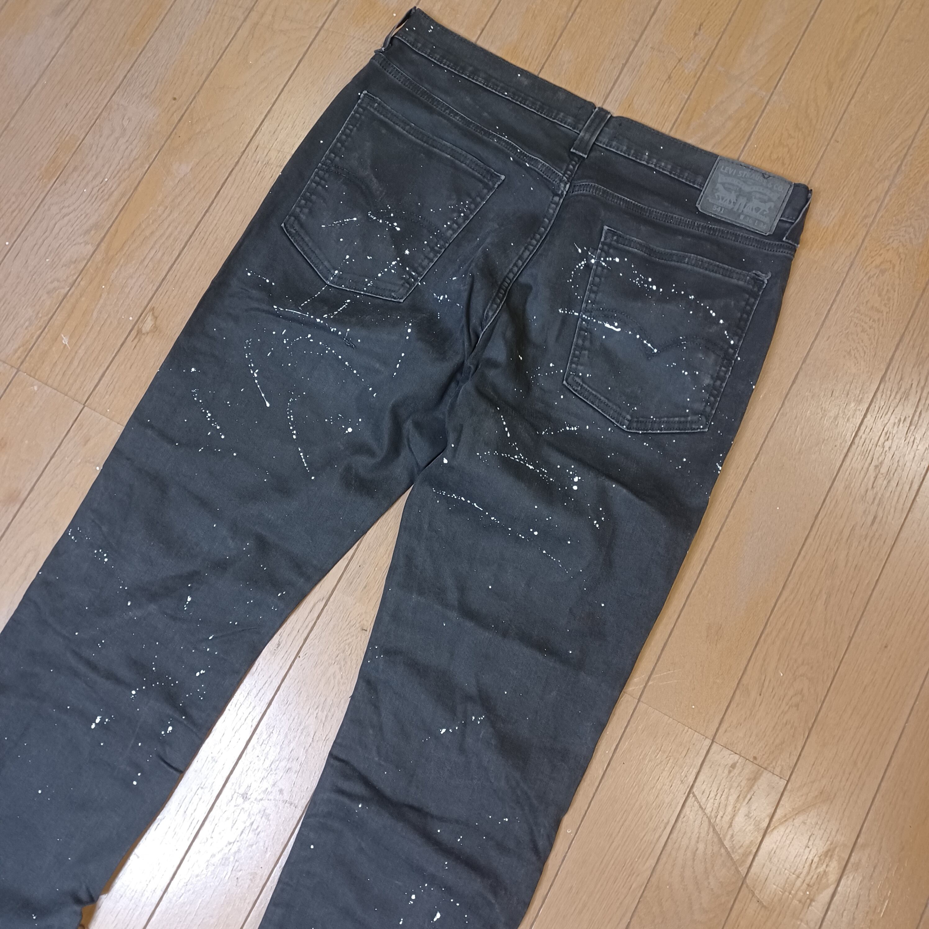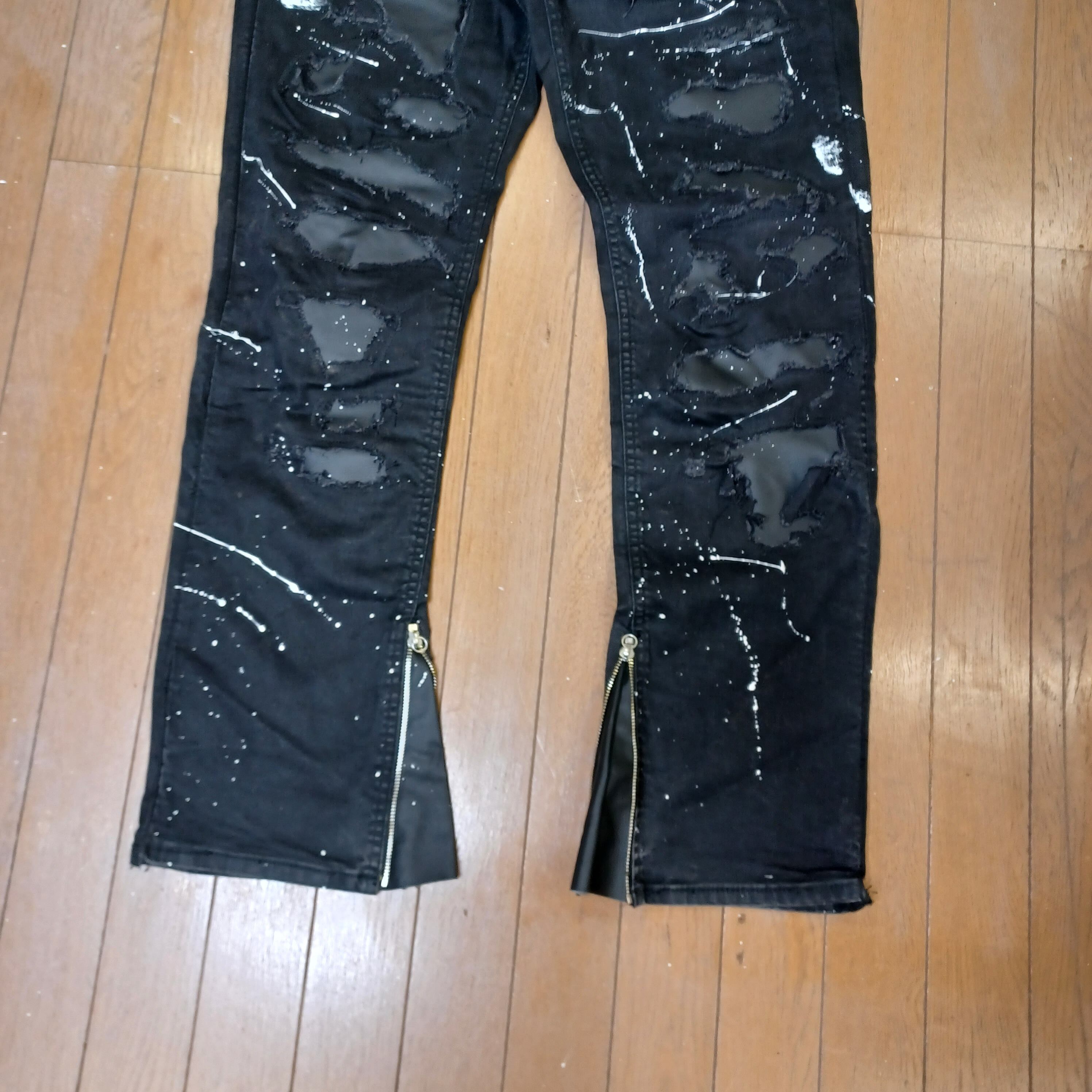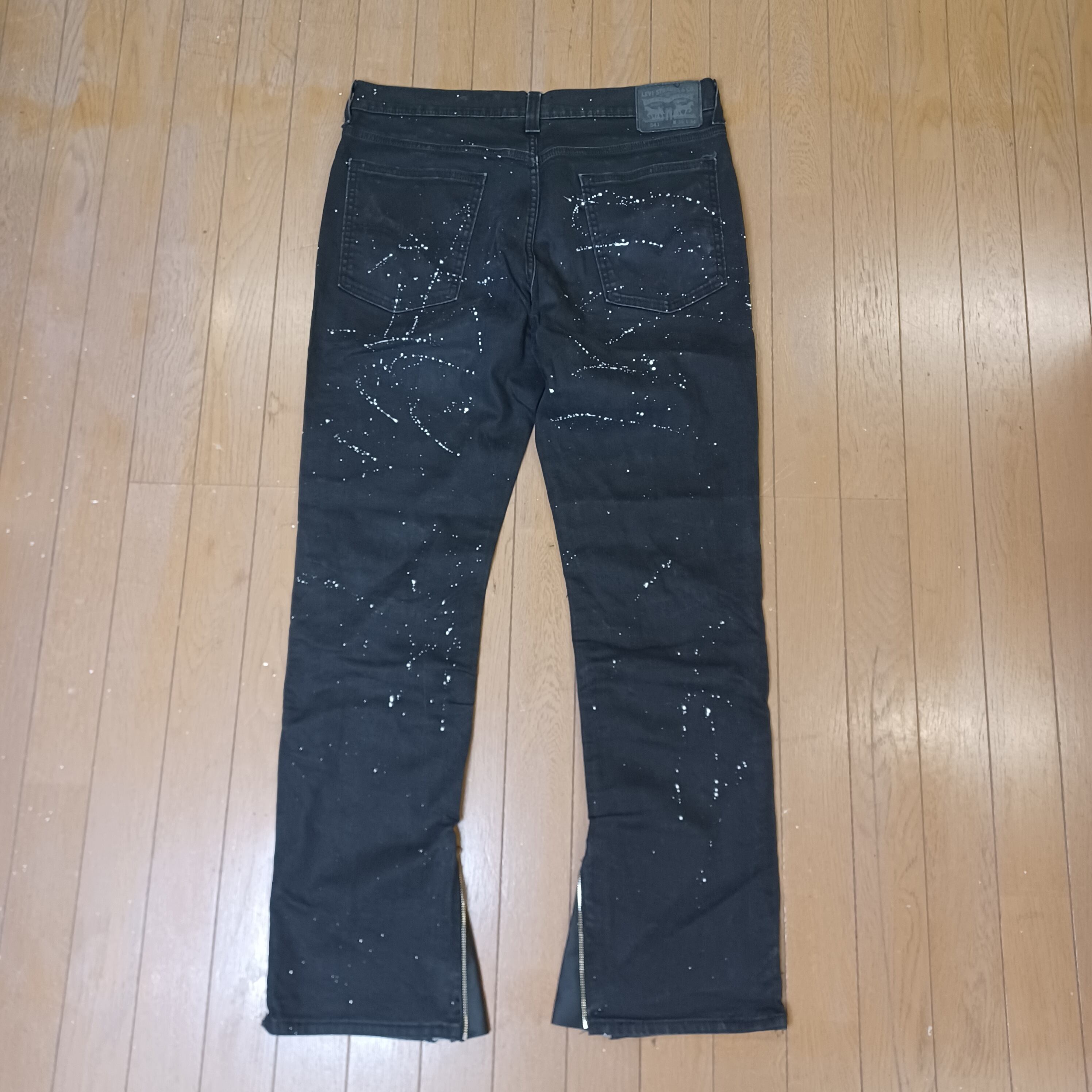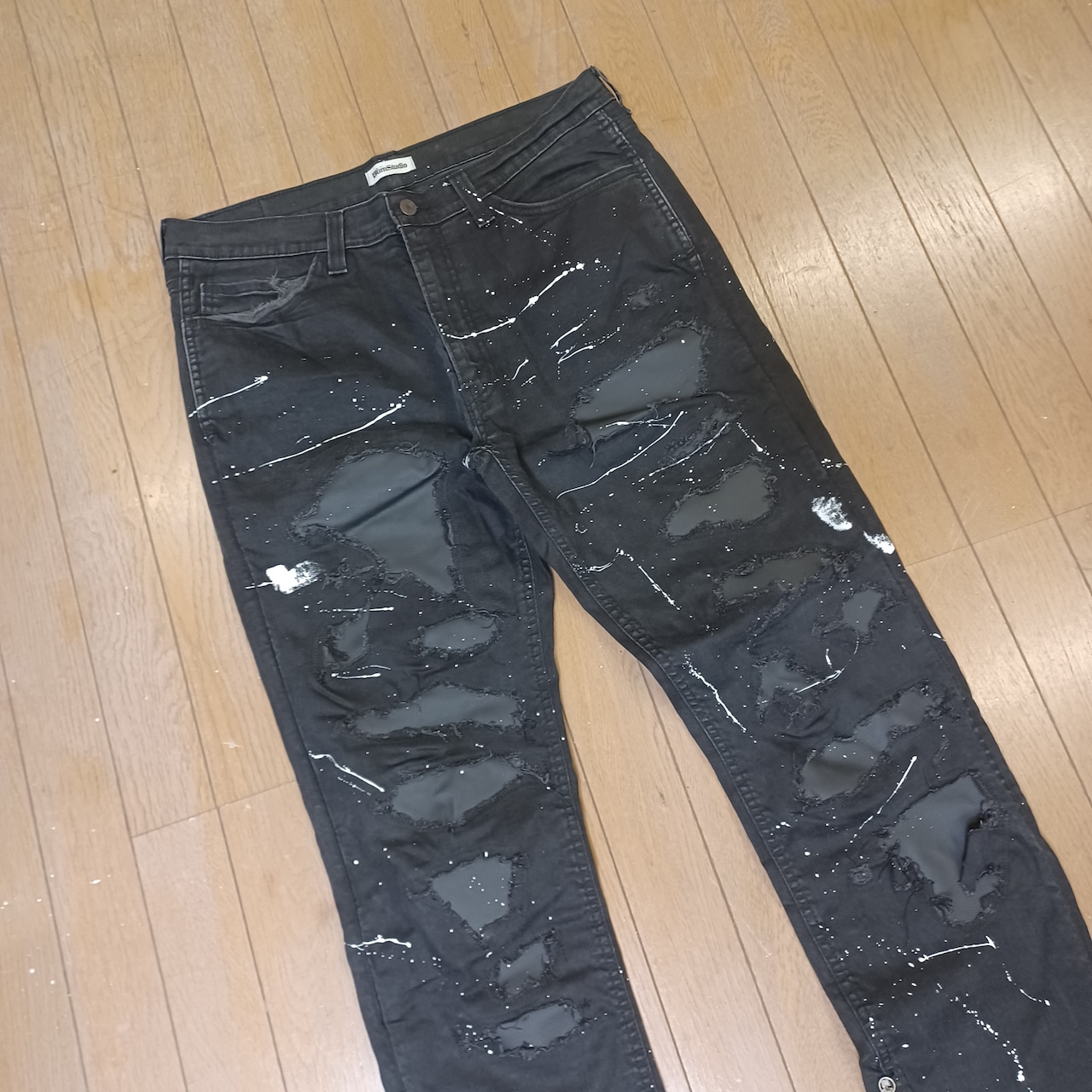 ヴィンテージLevi'sのブラックデニムをベースにダメージ加工、ミシン加工、ペイント加工を施しました。