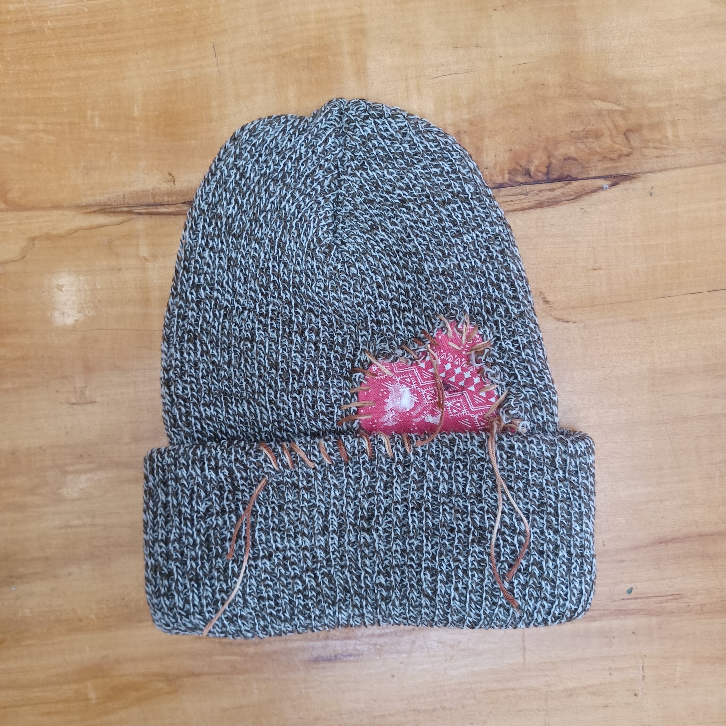 MADE IN USAの色鮮やかなアクリル素材のニットキャップに日本の伝統技術でもある刺し子抜いを施しました。
