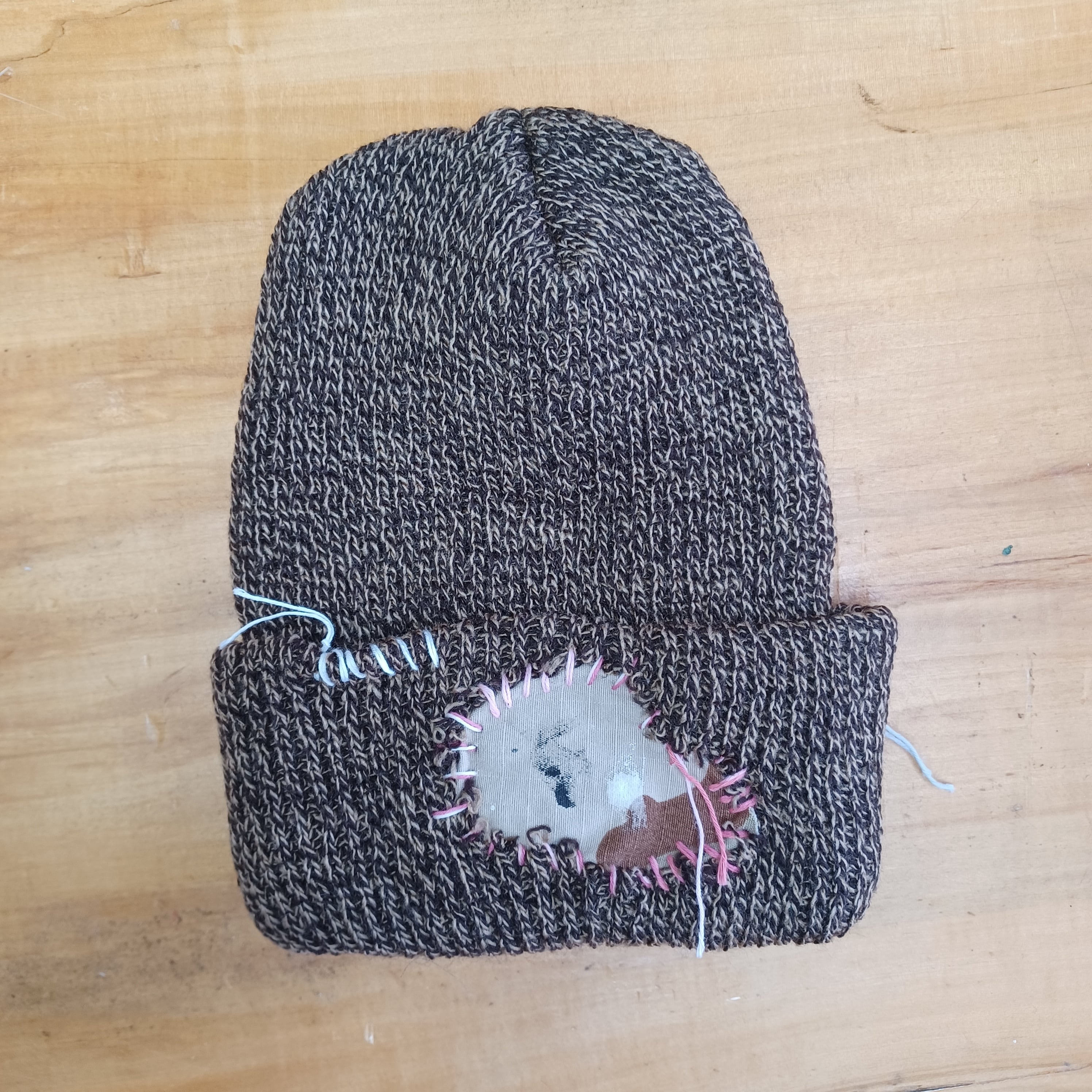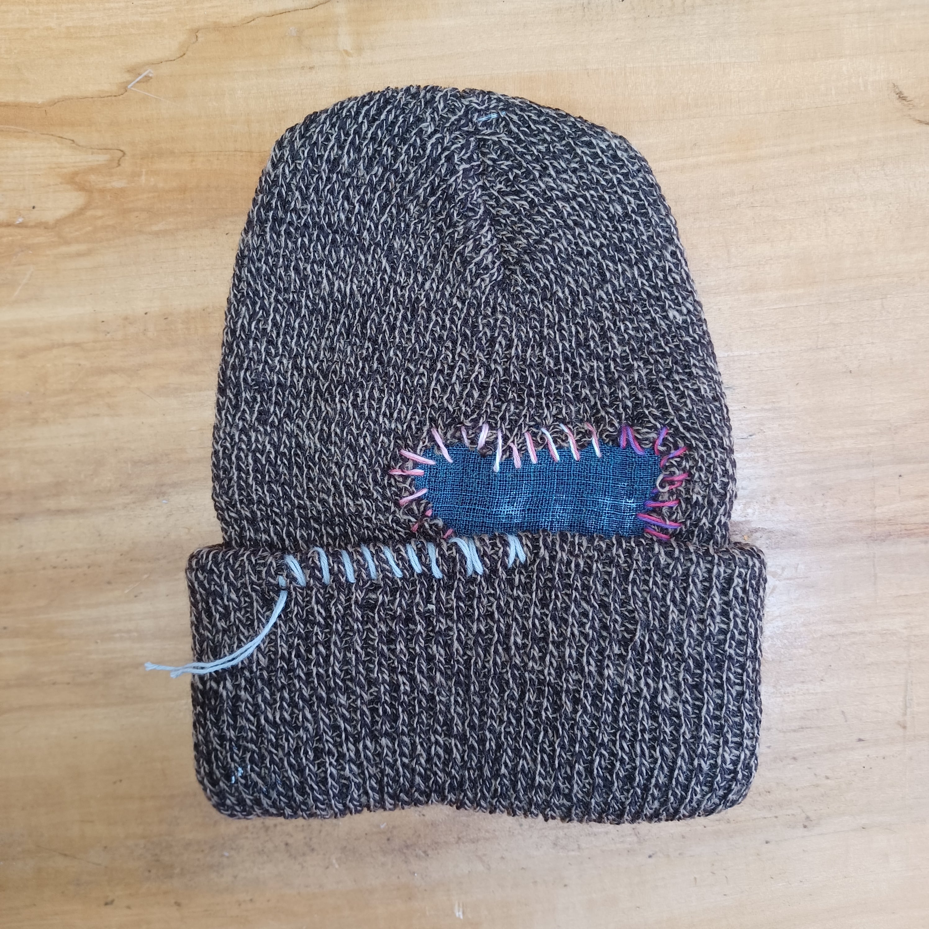 MADE IN USAの色鮮やかなアクリル素材のニットキャップに日本の伝統技術でもある刺し子抜いを施しました。