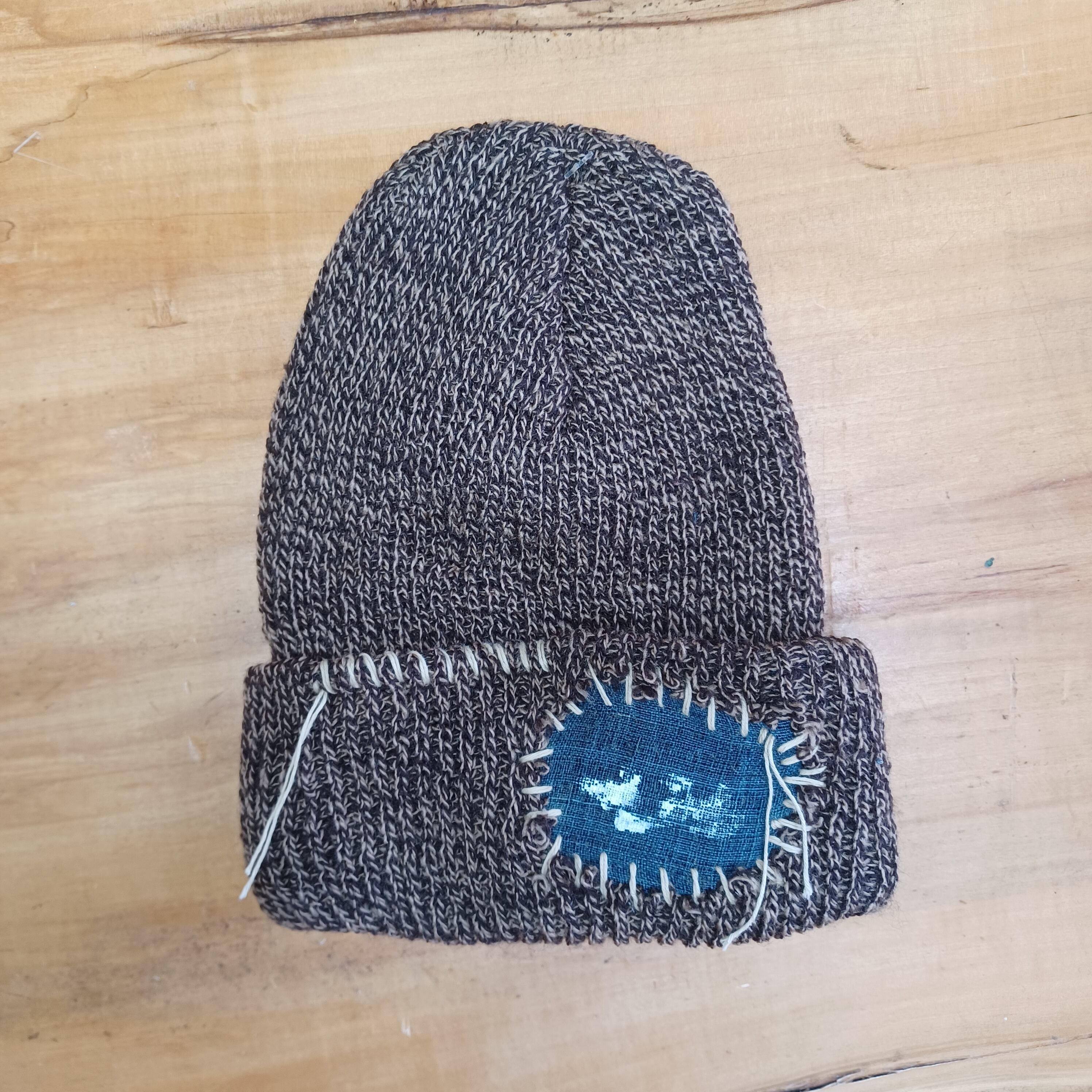 MADE IN USAの色鮮やかなアクリル素材のニットキャップに日本の伝統技術でもある刺し子抜いを施しました。